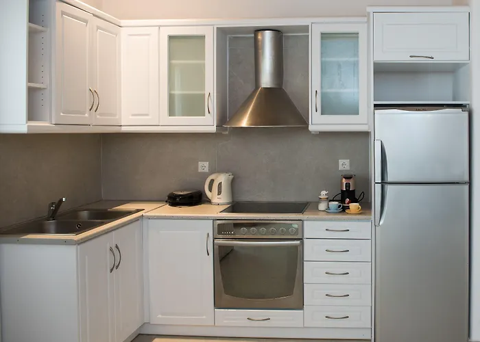 O Villa Meliti dispõe de cozinha para auto-atendimento. Este apartamento está a poucos quarteirões da paragem Platys Gialos.